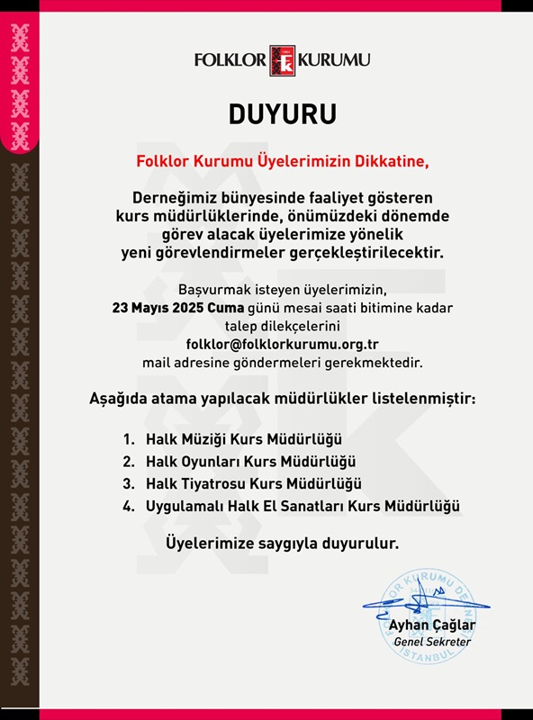 📢 Folklor Kurumu Üyelerimizin Dikkatine