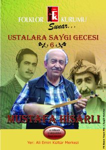 Görev süresi boyunca düzenlenen “Ustalara Saygı” gecelerinin altıncısının Mustafa Hisarlı için gerçekleştirilmiş olmasının, kendisine duyulan saygının en güçlü göstergelerinden biri olduğunu belirten Genel Başkanımız, merhumun Folklor Kurumu’na ve ülkemizin halk kültürüne kattığı değerlerin daima minnetle anılacağını vurguladı.