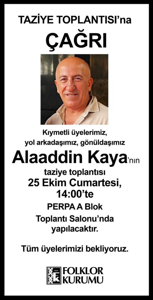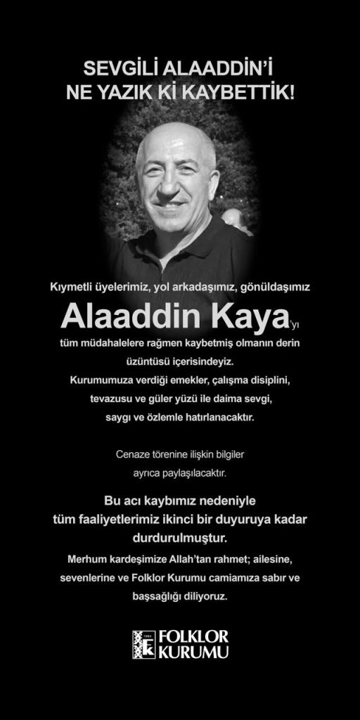 SEVGİLİ ALAADDİN KAYA’YI KAYBETTİK